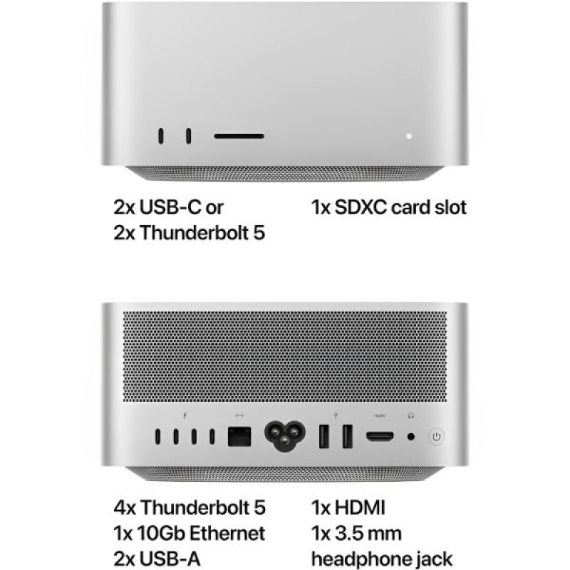 Em termos de conectividade, o Mac Studio é incomparável. Com portas Thunderbolt 5 e USB-C 3.2 Gen 2, a transferência de arquivos grandes é rápida e simples. Além disso, a compatibilidade com Wi-Fi 6E e Bluetooth 5.3 garante conexões sem fio estáveis e velozes.